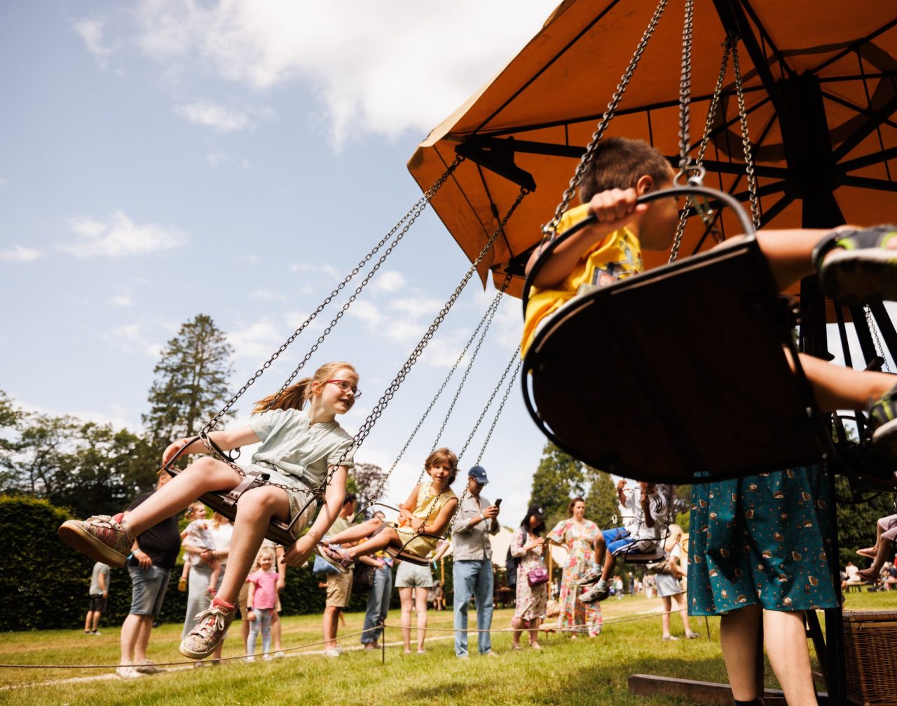 Hoor het rinkelen van kettingen, het gepiep van het rad… de ambachtelijke handdraaimolen Groene Draack neemt je mee terug in de tijd! Zwier mee en voel de wind door je haren waaien, terwijl het lijkt alsof je gewichtloos bent.